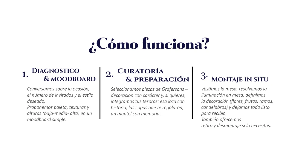 En GRAFERSONS sabemos que una mesa bien puesta no solo decora: cuenta una historia. Nuestro servicio de tablescape a domicilio transforma cualquier comida en una experiencia visual y sensorial digna de portada.